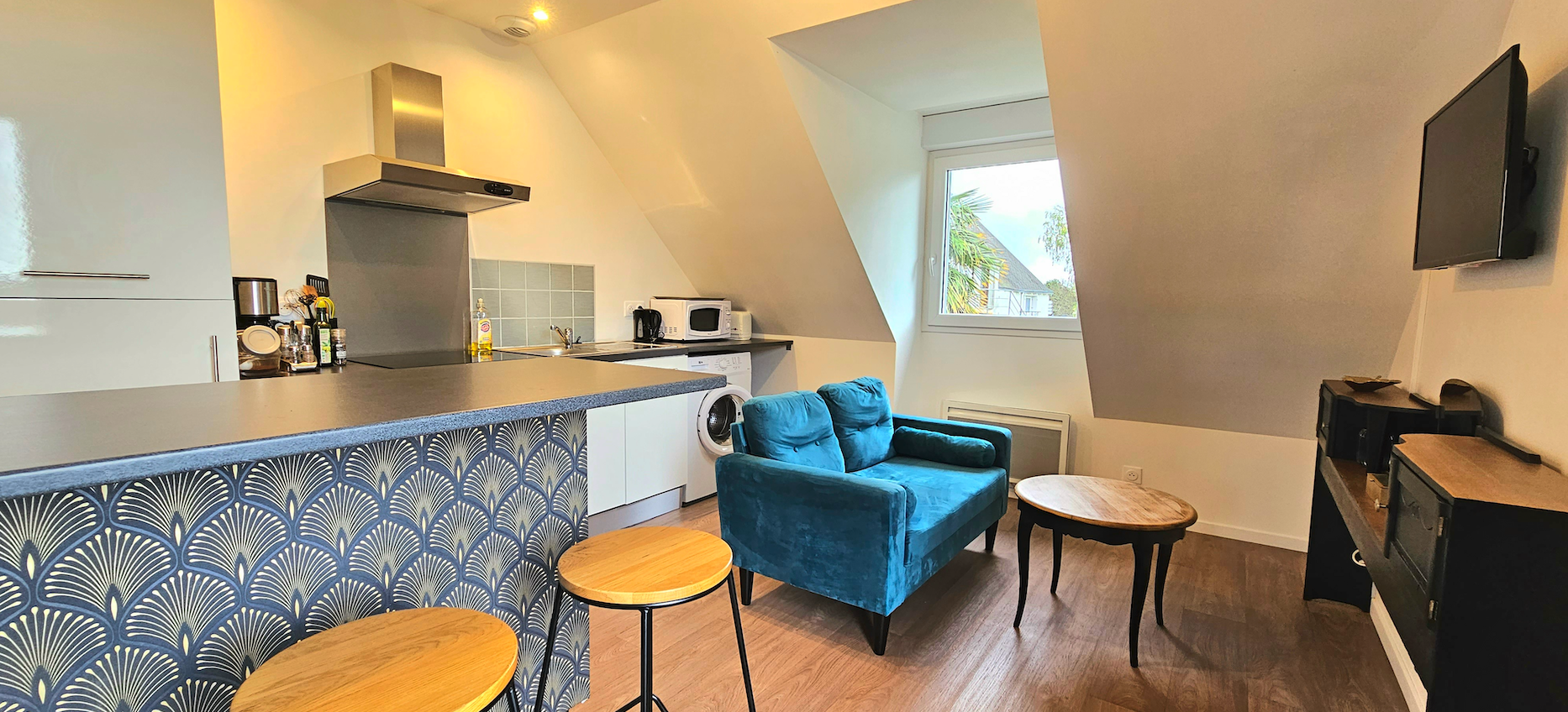 – 1 cuisine aménagée entièrement équipée, et ouverte sur salon.