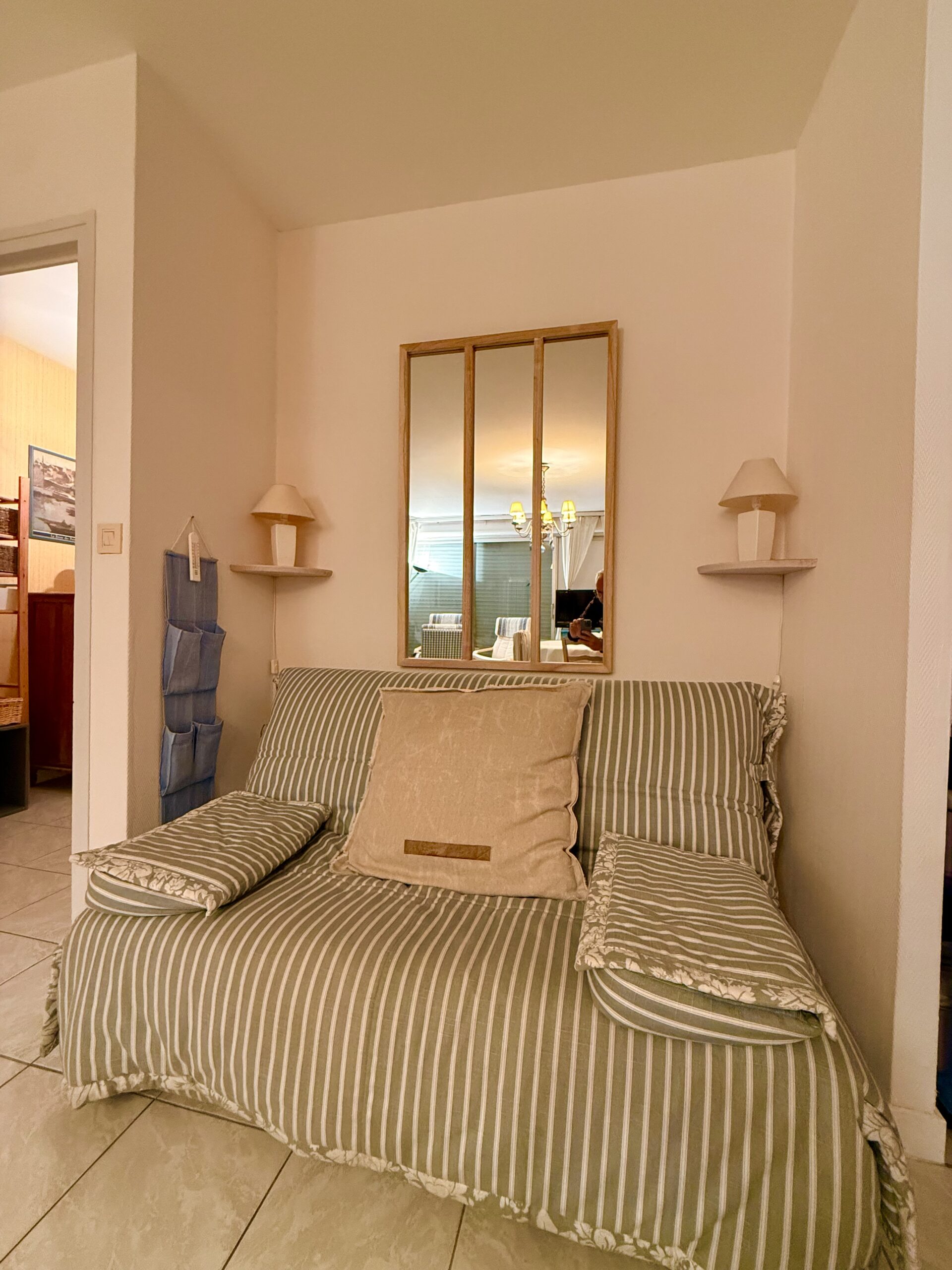 L’appartement se compose d’une entrée desservant une pièce équipées d’un lit escamotable