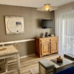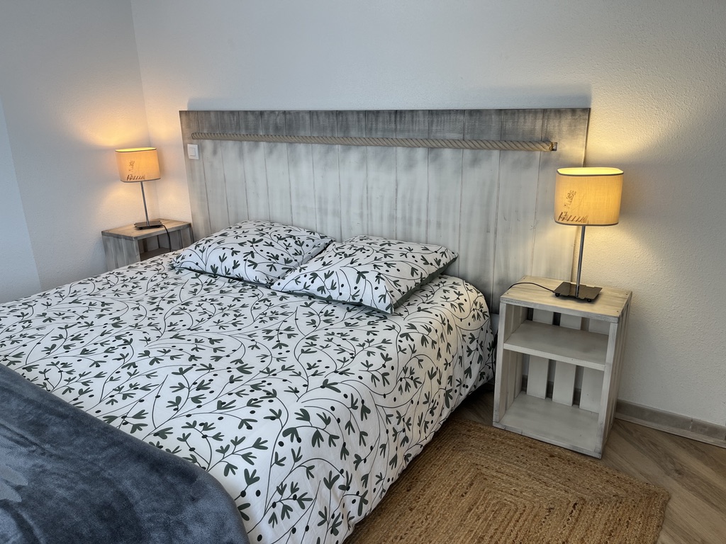 D’une entrée desservant un grand salon avec canapé convertible, salle à manger et cuisine avec balcon, d’une grande chambre équipées d’un lit de 160cm avec sa salle de bain , une 2em chambres avec 2 lits une personne, une salle de bain avec WC et baignoire. Une place de parking privative couverte est à votre disposition ainsi qu’une cave pour vos vélos. Le logement est équipé de couettes et oreillers .
